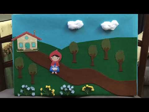 Pedirlle aos nenos que peguen o lobo e a Carapuchiña na lámina, como se o lobo a estivese a perseguir.